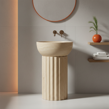 مغسلة رخامية بيضاوية بحواف خشنة – طابع طبيعي فاخر