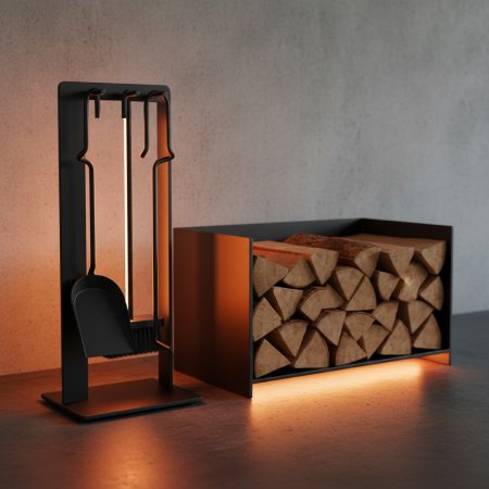 حامل حطب أرضي – حديد مطفي بزخرفة دوائر – قاعدة صاج سميكة