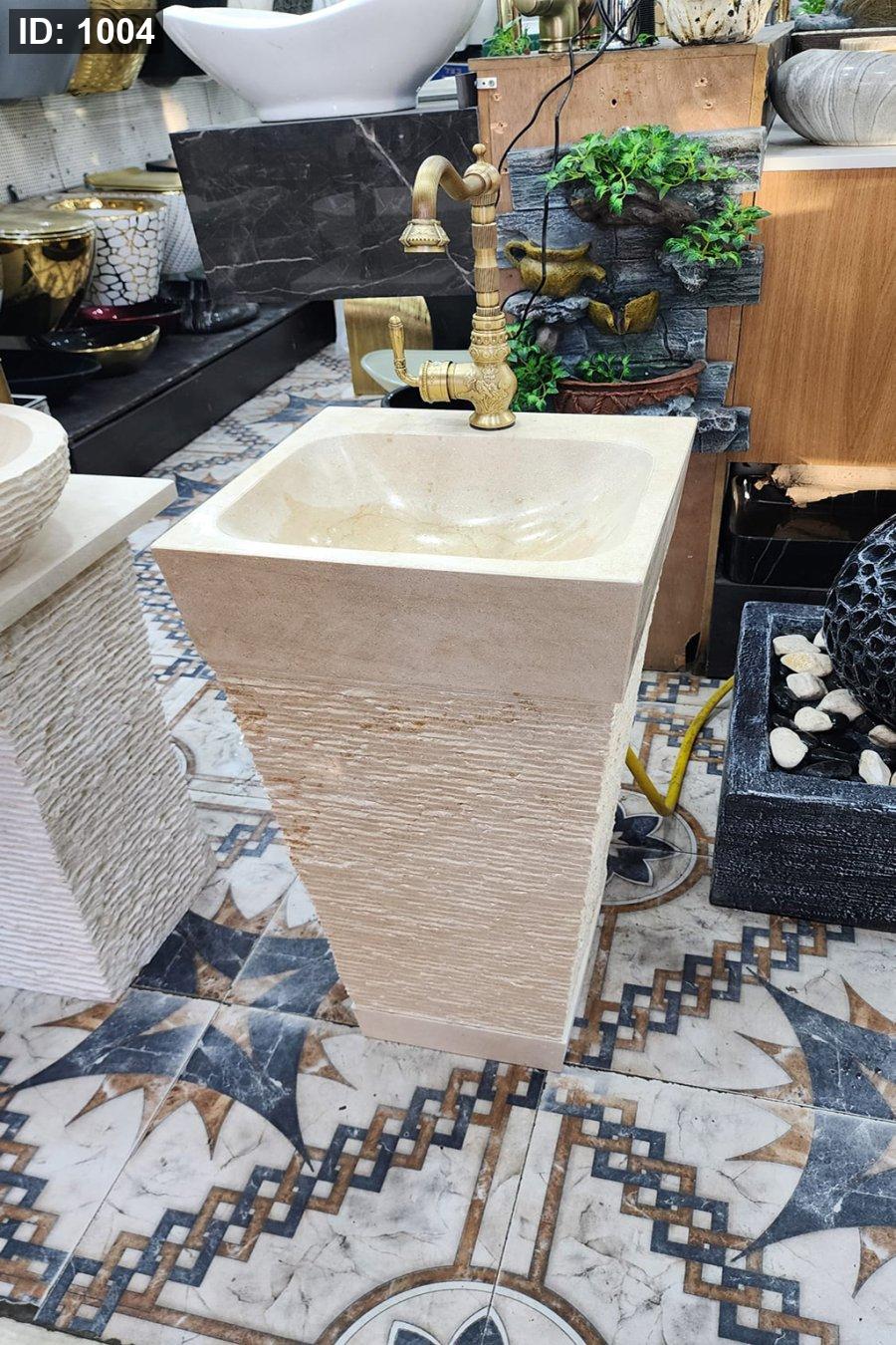 مغسلة حجر طبيعي بنقش زخرفي وقاعدة متكاملة