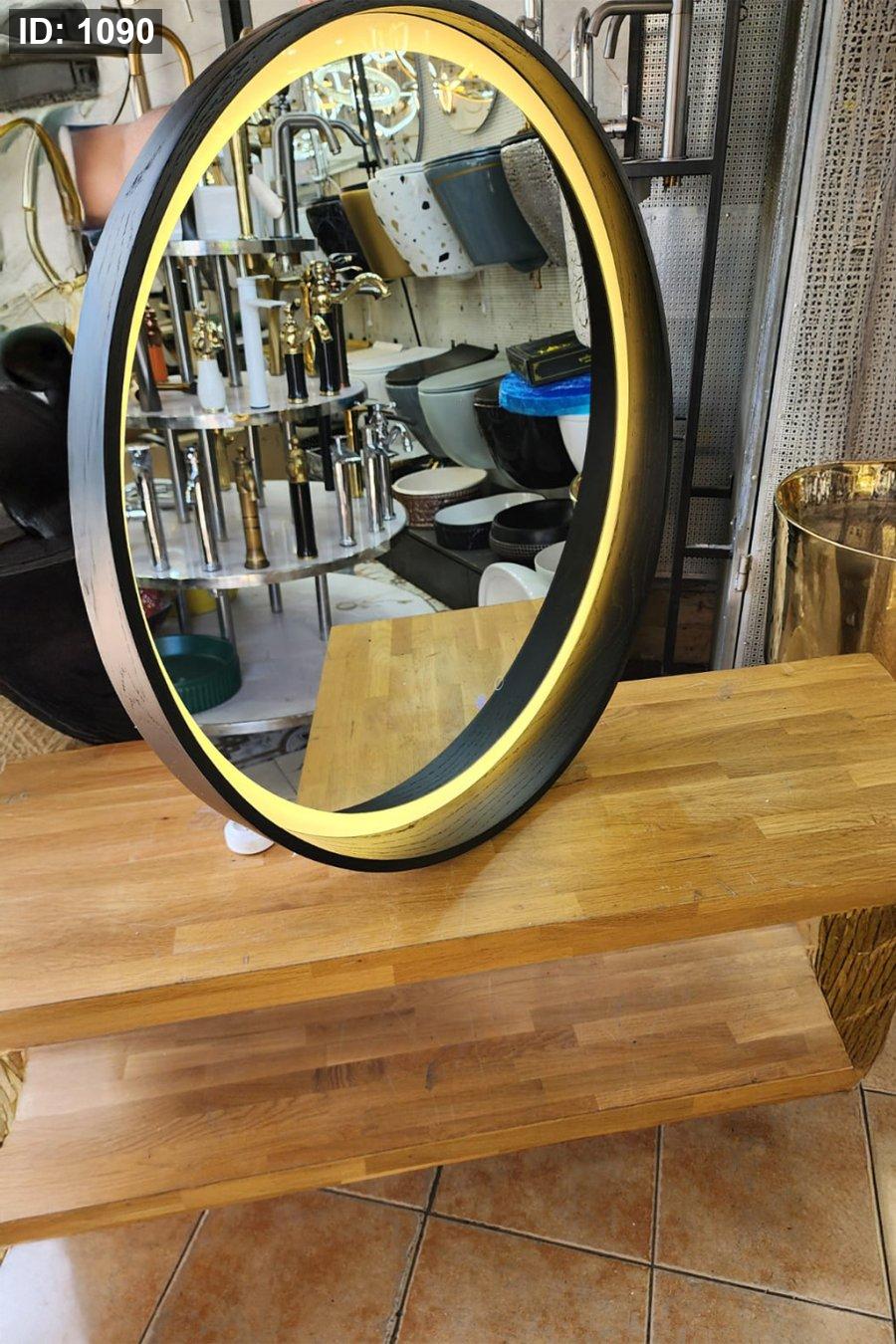 مرآة LED بيضاوية بإطار أسود – موديل M-100