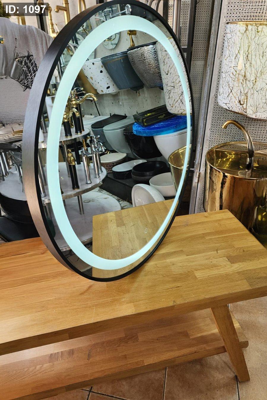 مرآة LED بيضاوية بإطار أسود – موديل M-100