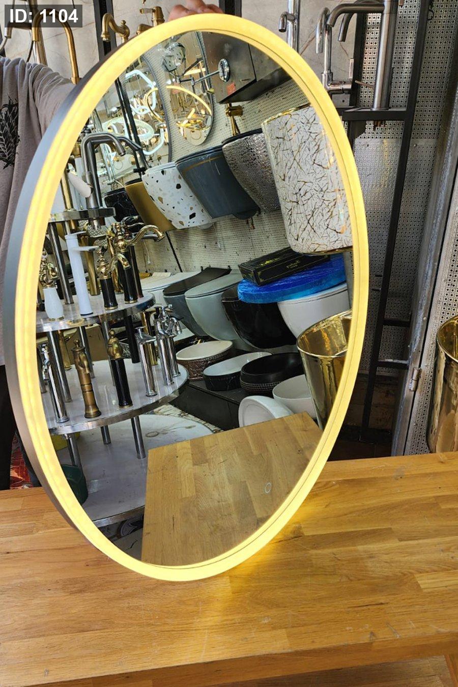 مرآة LED بيضاوية بإطار ذهبي – موديل M-103