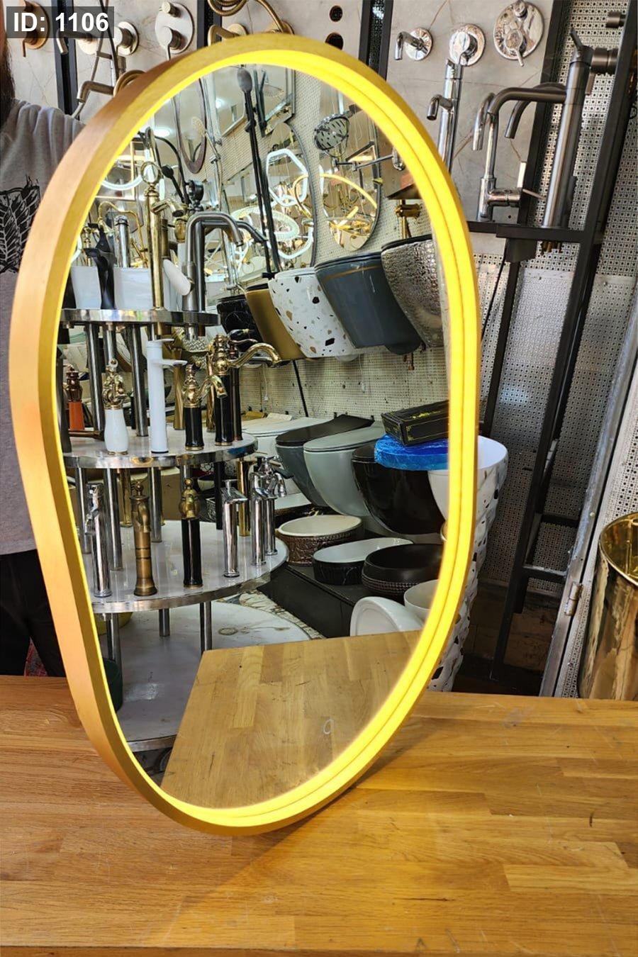 مرآة LED بيضاوية بإطار ذهبي – موديل M-103