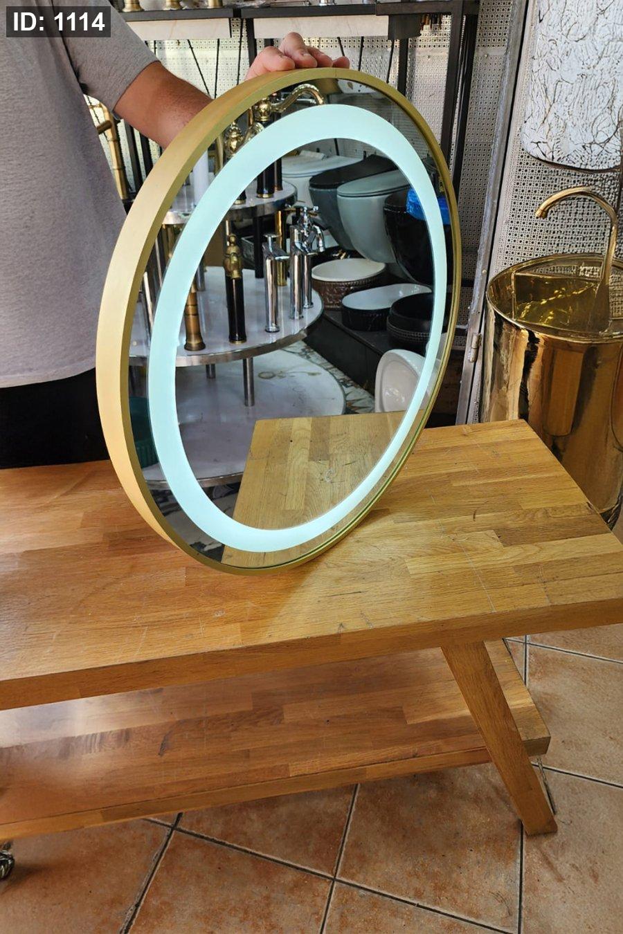 مرآة LED بيضاوية بإطار ذهبي – موديل M-103