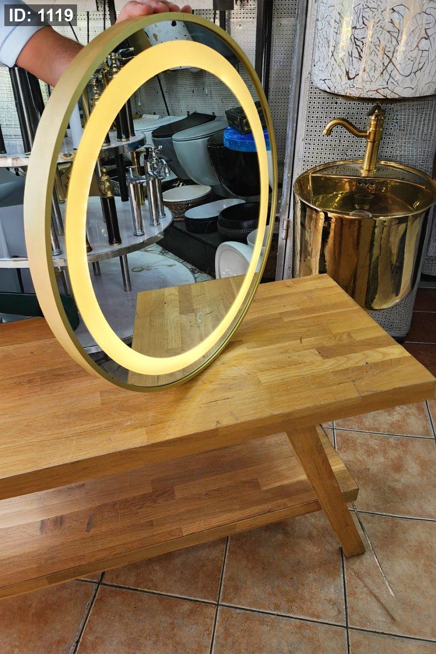 مرآة LED بيضاوية بإطار ذهبي – موديل M-103