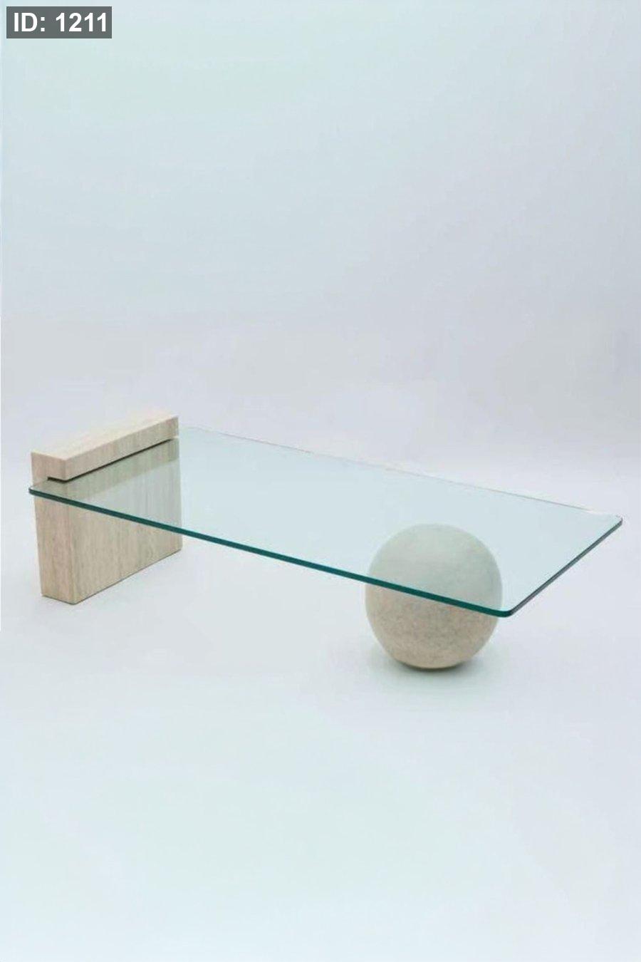قاعدة تتكوّن من كرة حجرية وكتلة خشبية متوازنة.