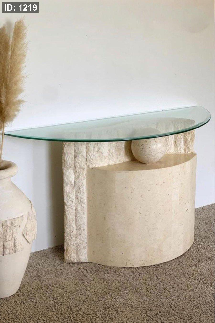 سطح زجاجي أنيق بقاعدة هندسية منحوتة بتفاصيل طبيعية.