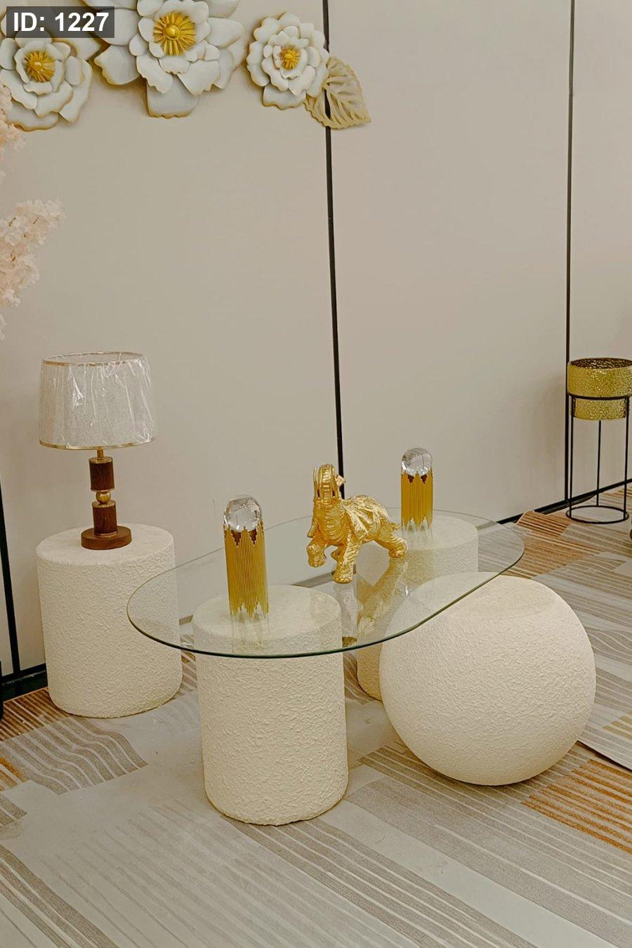 سطح زجاجي سميك يمنح الطاولة مظهرًا فاخرًا ومتوازنًا.