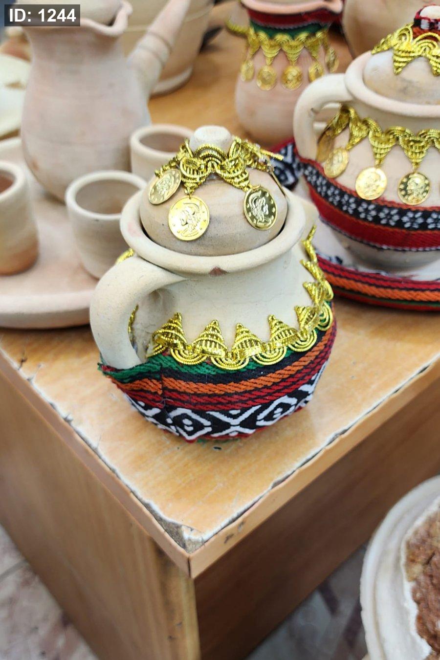 دلّة فخارية تراثية مزينة بالنقوش والذهب