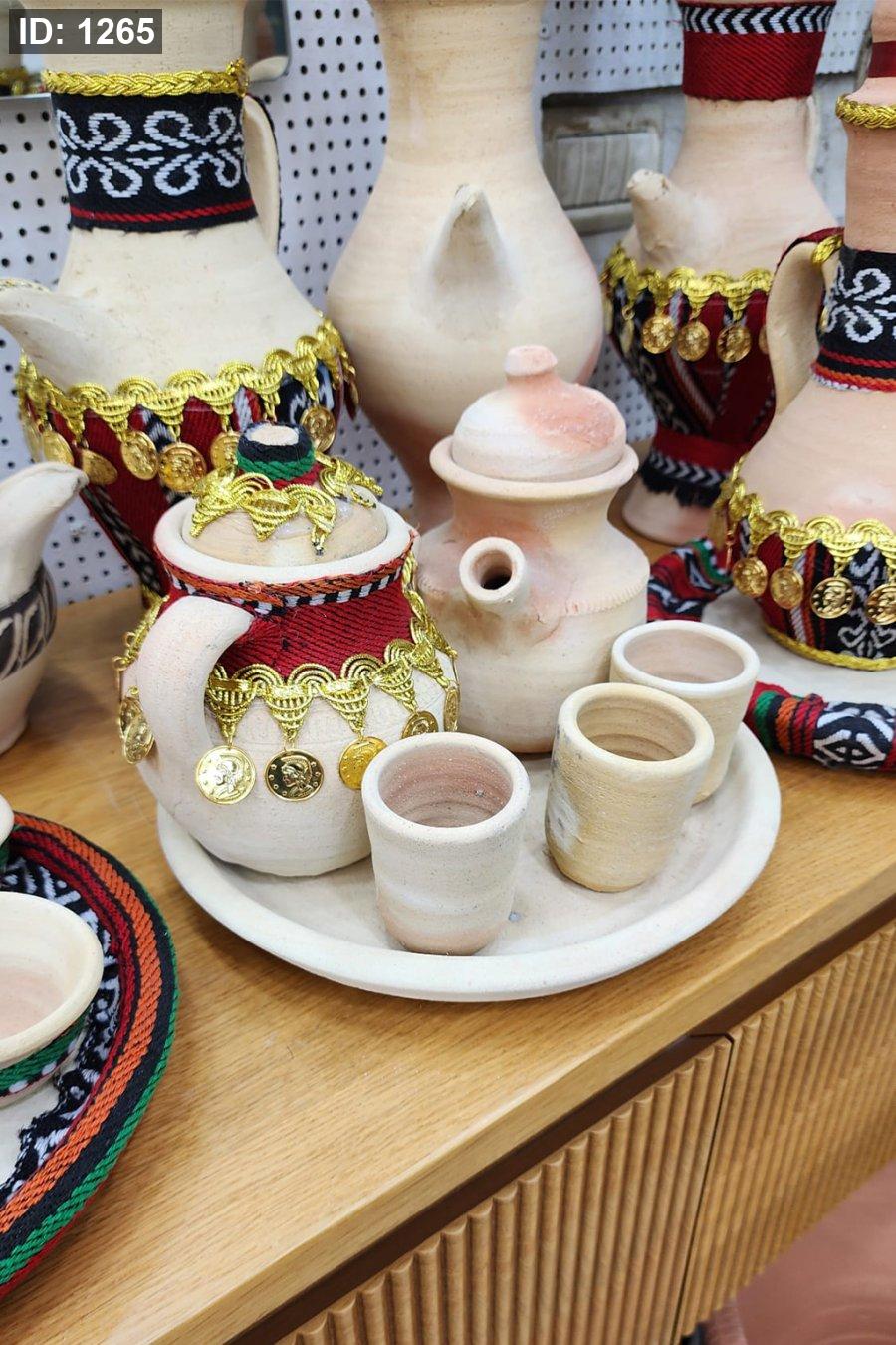 ✅ يحتوي على دلّة + صينية فخارية + أكواب صغيرة