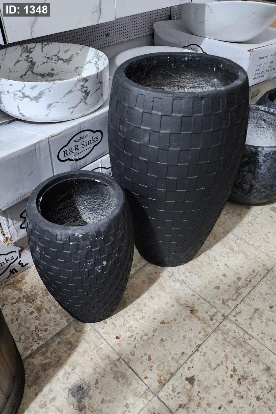 طقم فخّارات سوداء بتصميم مربعات بارزة