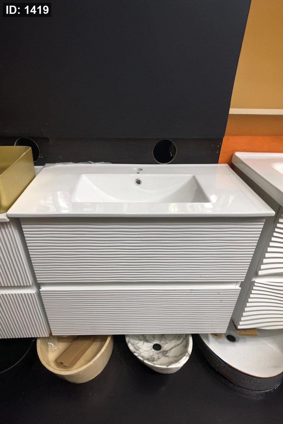 مغسلة بورسلان مع خزانة معلّقة وتصميم عصري – مع مرآة LED