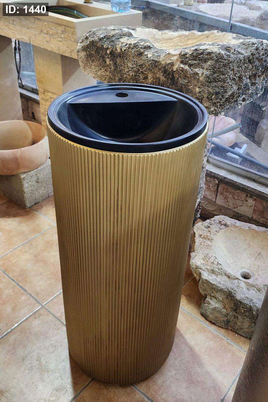 ✅ حوض أسود لامع يمنح تبايناً جذّاباً مع القاعدة الذهبيّة