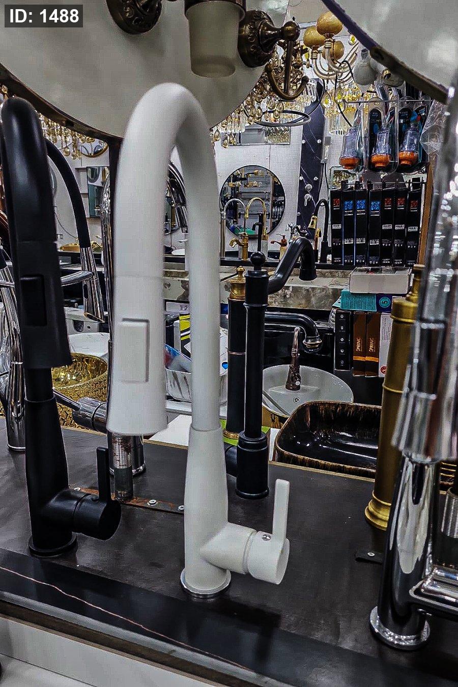 حنفية مطبخ بيضاء مطفية بفتحة سحب مرنة