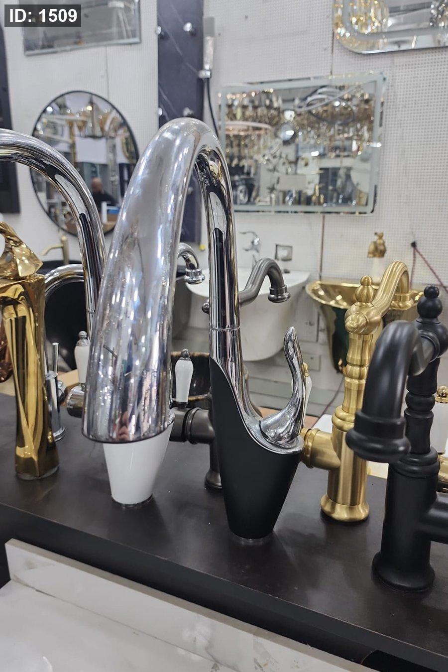 حنفية مطبخ فاخرة بلون أسود وكروم بتصميم منحوت