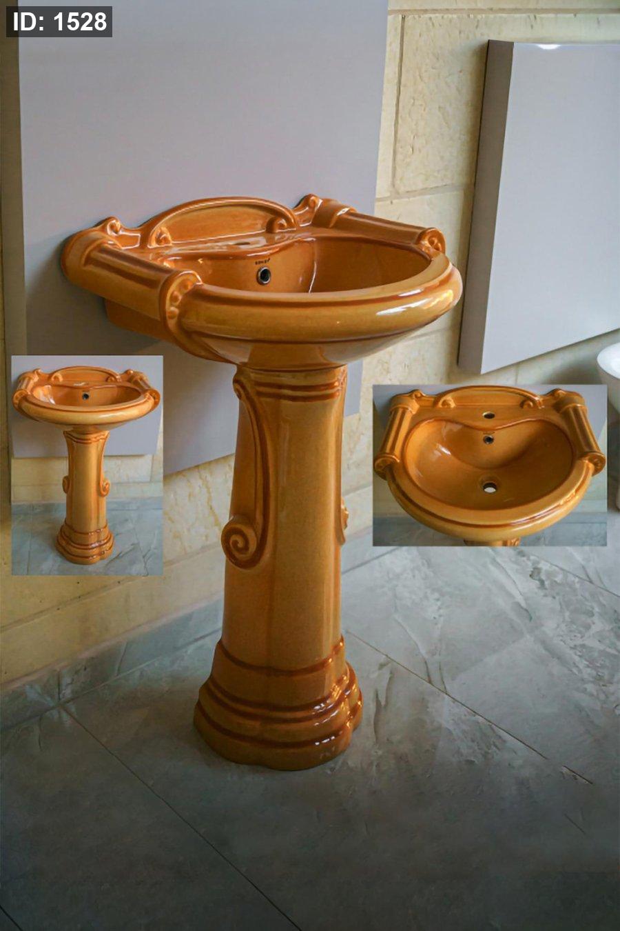 مغسل سيراميك مع عمود – لون برتقالي فاخر