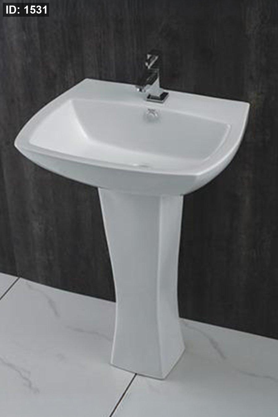 مغسل سيراميك مع عمود – تصميم هندسي عصري