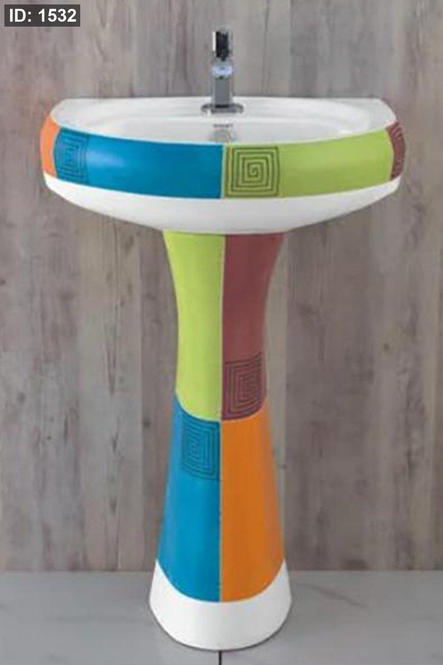 مغسل سيراميك مع عمود – تصميم فني ملون