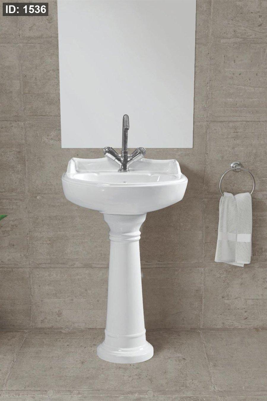 مغسل سيراميك مع عمود – تصميم كلاسيكي أنيق