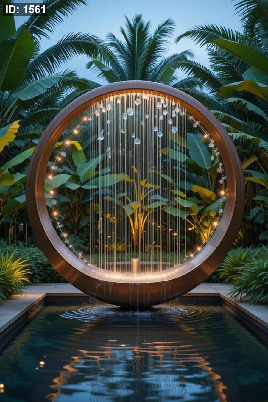 تصميم عصري مبهر على شكل حلقة معدنية مضيئة بانسياب ماء ناعم، تضيف لمسة من الفخامة والهدوء للمساحات الخارجية.