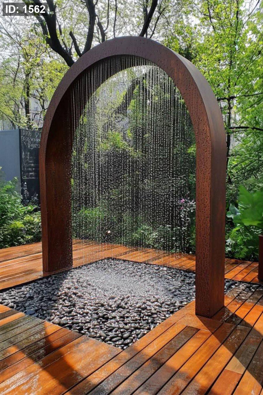 نافورة بتصميم قوسي عصري يُبرز انسياب الماء على شكل مطر ناعم، تمنح الحديقة أو الممر لمسة مريحة وطبيعية بإطلالة أنيقة.