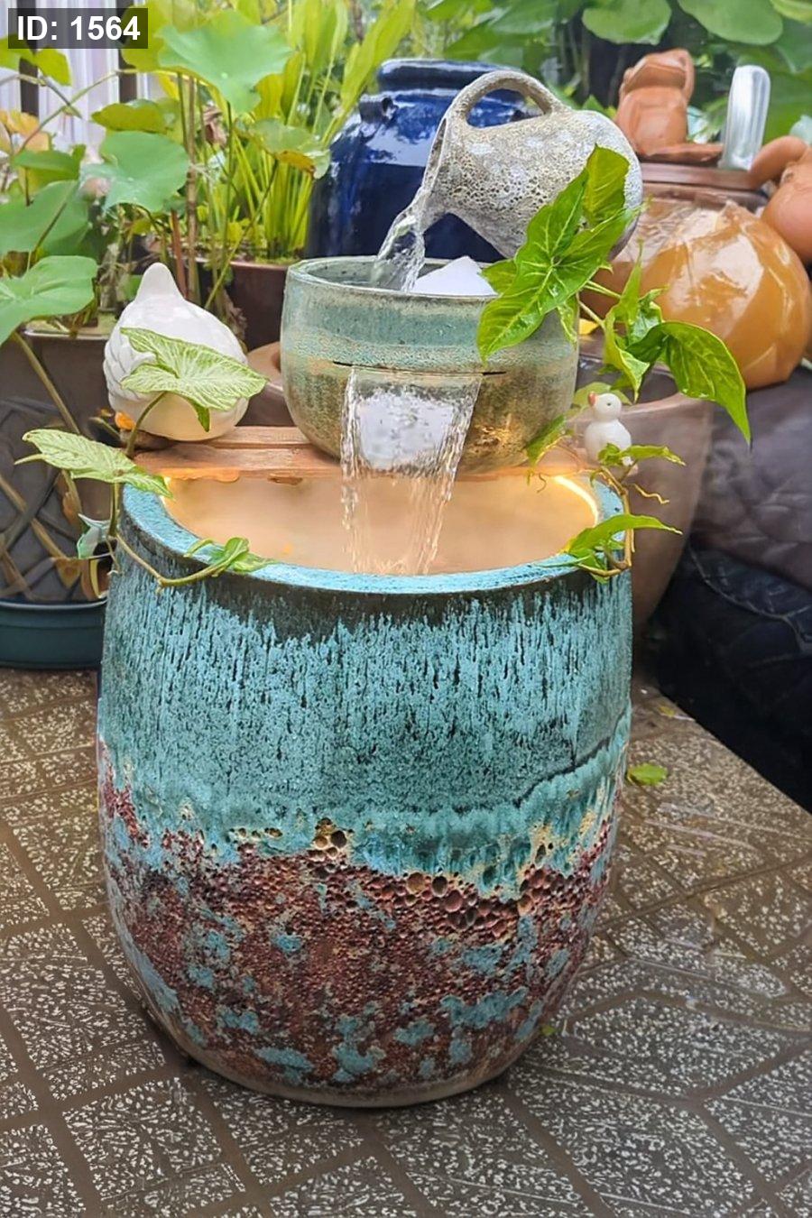 🪴 نافورة فخارية مزجّجة بإضاءة خافتة