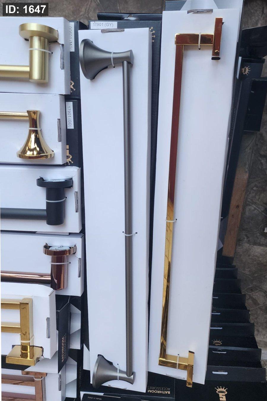 علاّقات مناشف فاخرة بتصميم مستقيم متوفّرة بلونين أنيقين: الرمادي المعدني العصري والذهبي اللامع الفخم — لتكمل ديكور حمّامك بلمسة توازن بين الحداثة والفخامة.