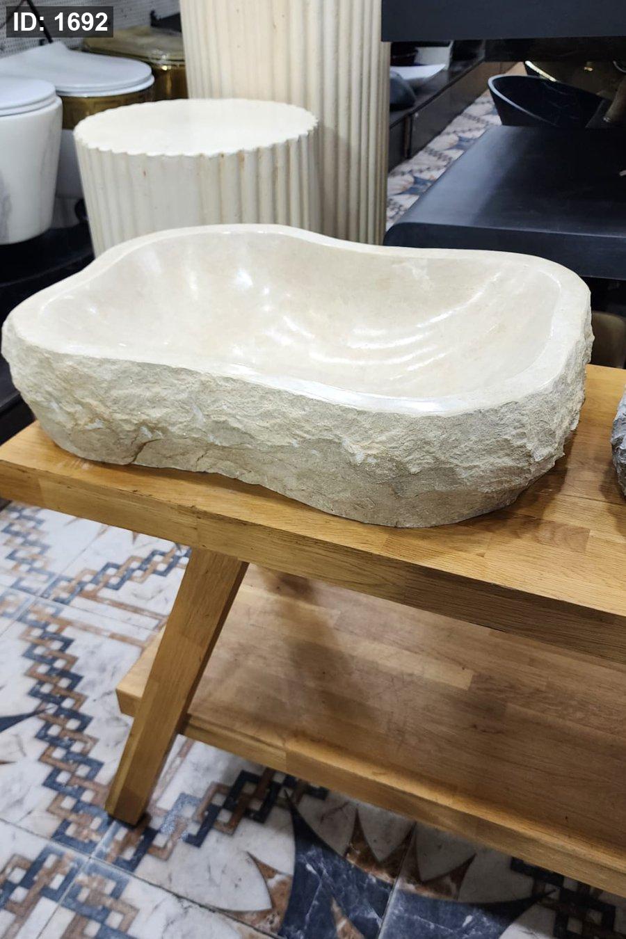 حوض مغسلة حجري طبيعي – تصميم عضوي فاخر