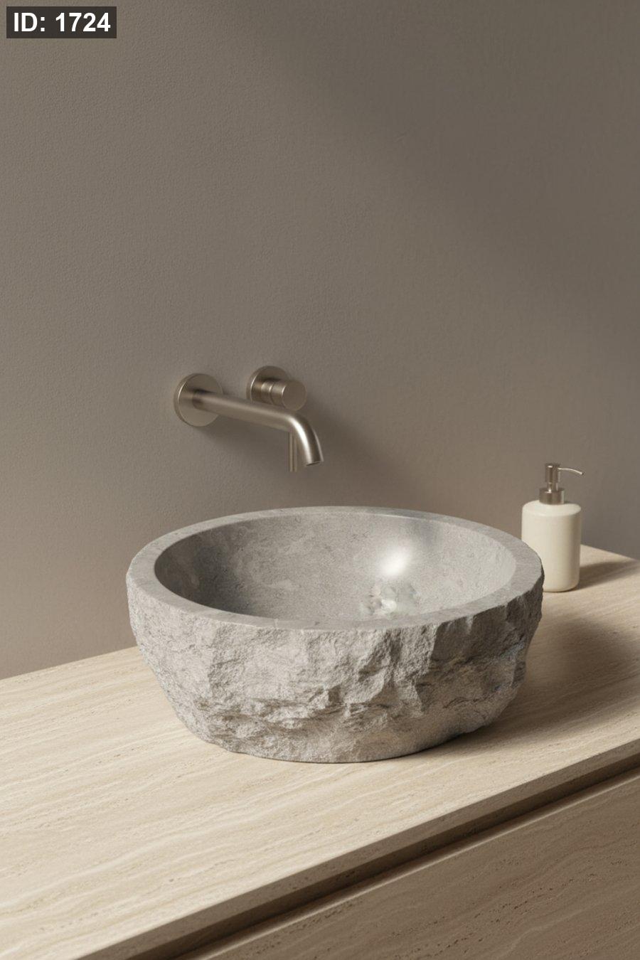 حوض مغسلة حجري طبيعي – تصميم عضوي فاخر