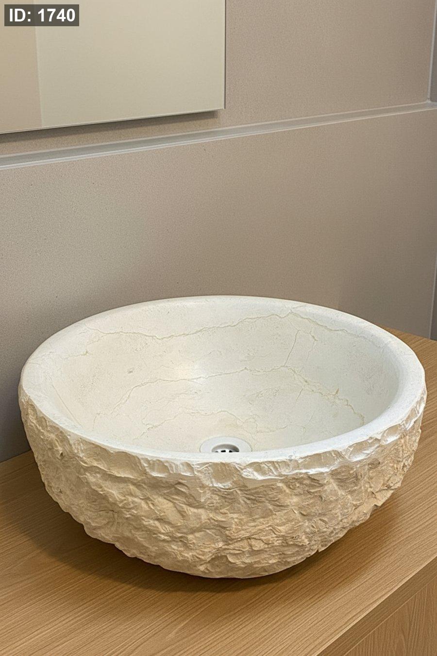 حوض مغسلة حجري طبيعي بنقشة خام – لون عاجي فاتح