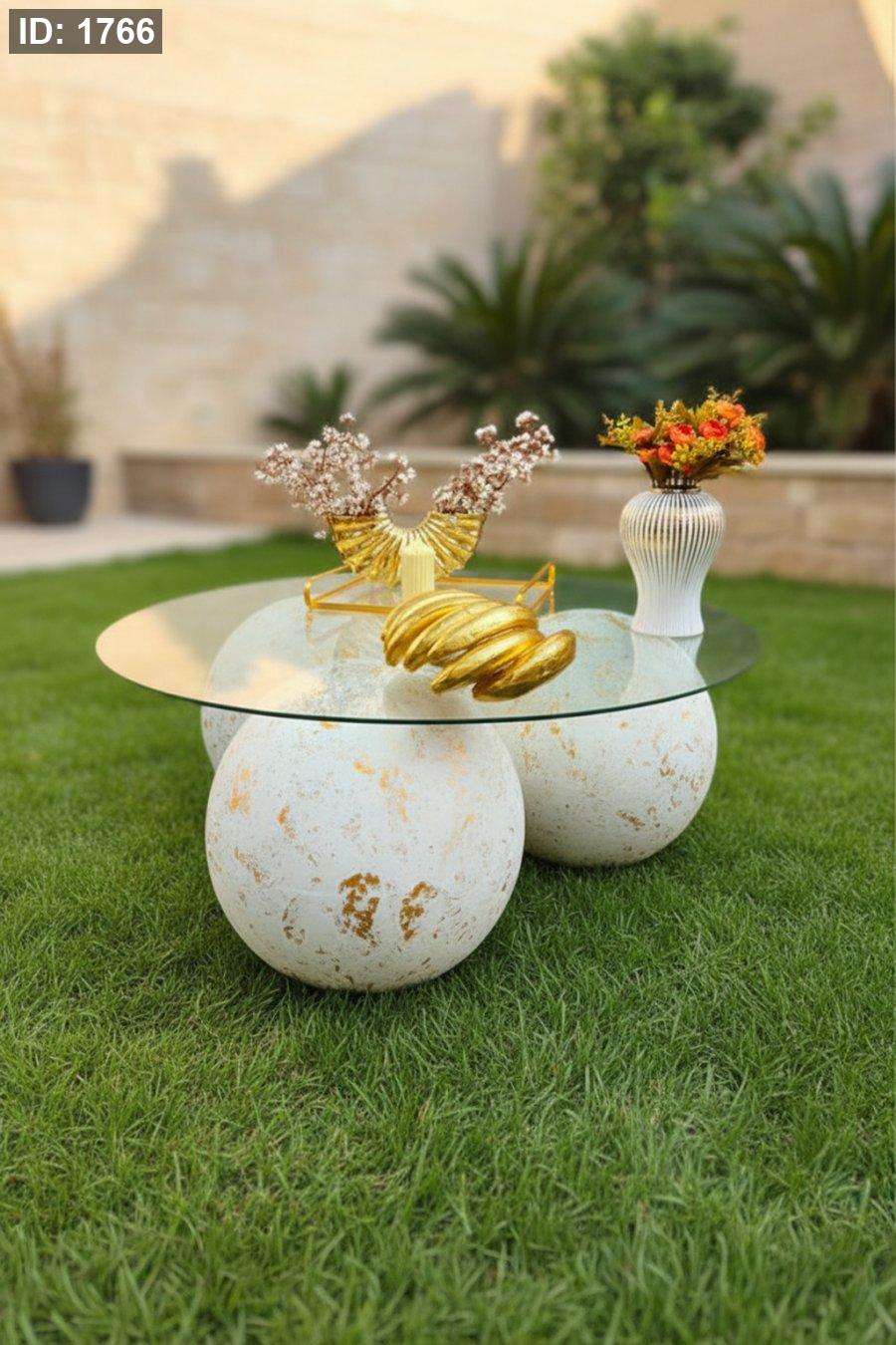 طاولة حجرية فاخرة بثلاث قواعد كروية