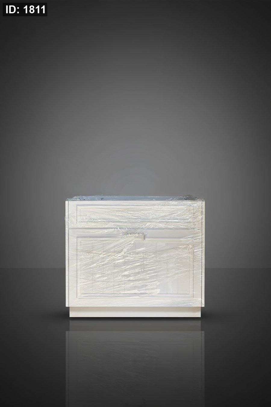 خزانة خشب أبيض صغيرة بتصميم كلاسيكي ناعم