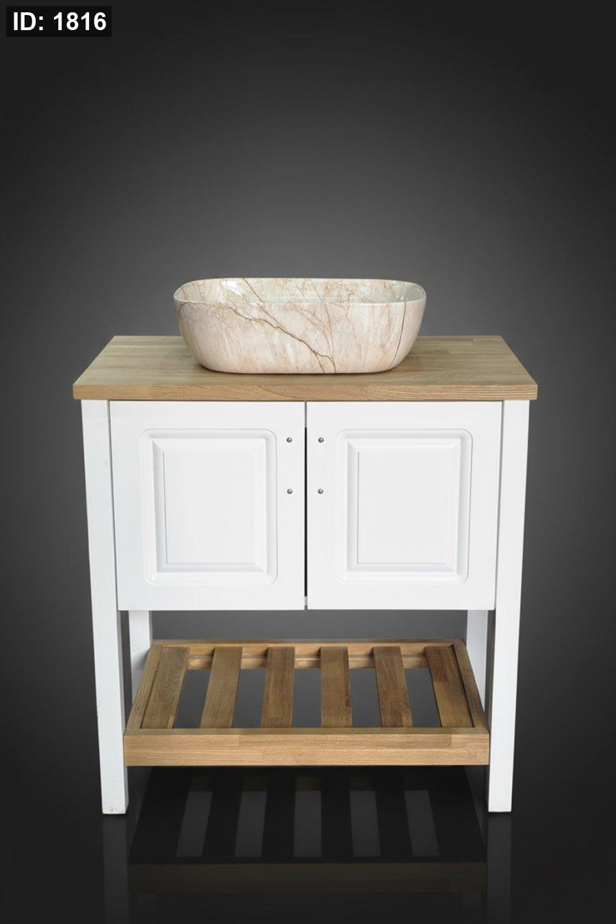 خزانة خشب وأبيض بحوض رخامي فاخر