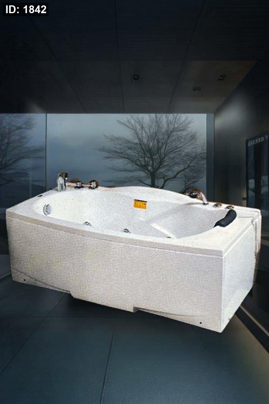 جاكوزي مستطيل مع نفّاثات مساج مائي ومسند رأس مريح، مناسب لحمّام مودرن بمساحة متوسطة.