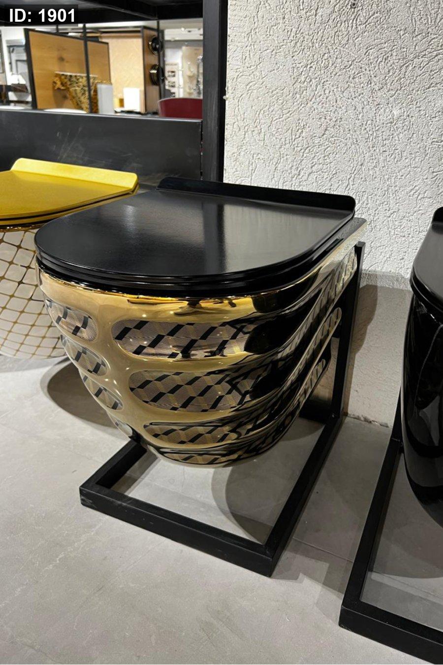 مرحاض تعليق فاخر – تصميم ذهبي أسود