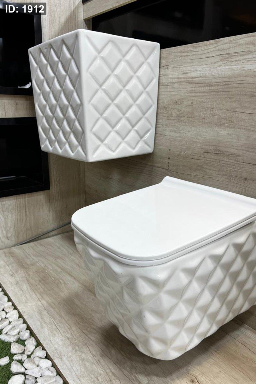 مرحاض تعليق بنقشة هندسية بارزة يمنح الحمّام مظهراً عصرياً وملمساً فاخراً.