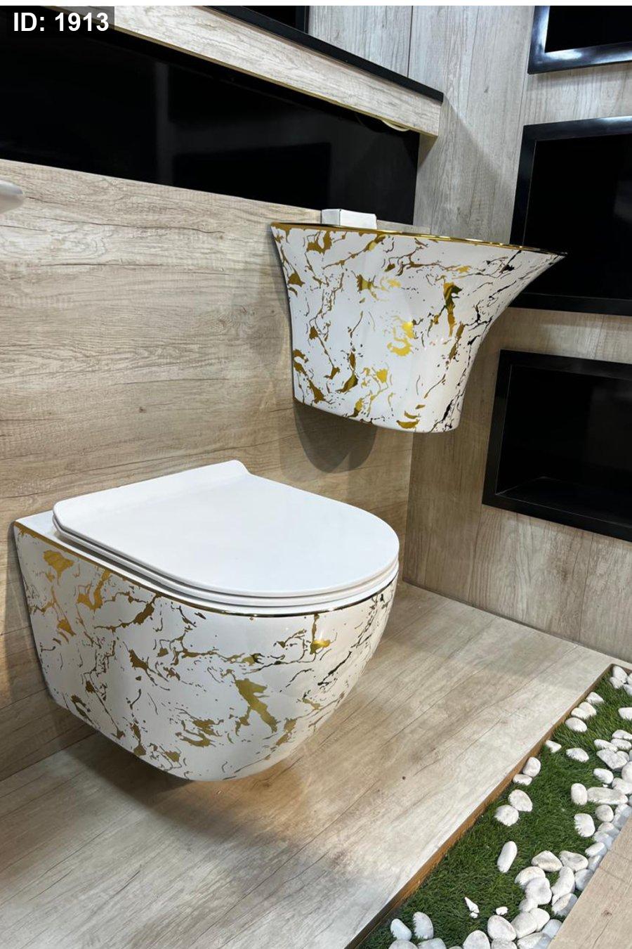 مرحاض تعليق رخامي – لمسات ذهبية فاخرة