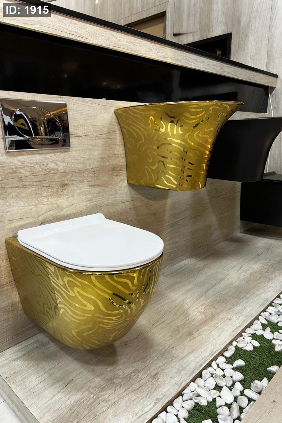 مرحاض تعليق – تشطيب ذهبي محفور فاخر