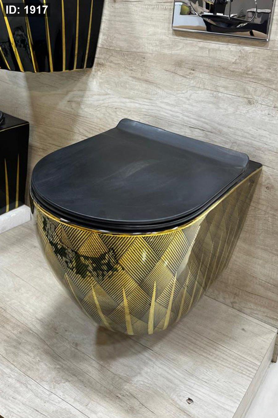 مرحاض تعليق – نقشة ذهبية هندسية فاخرة