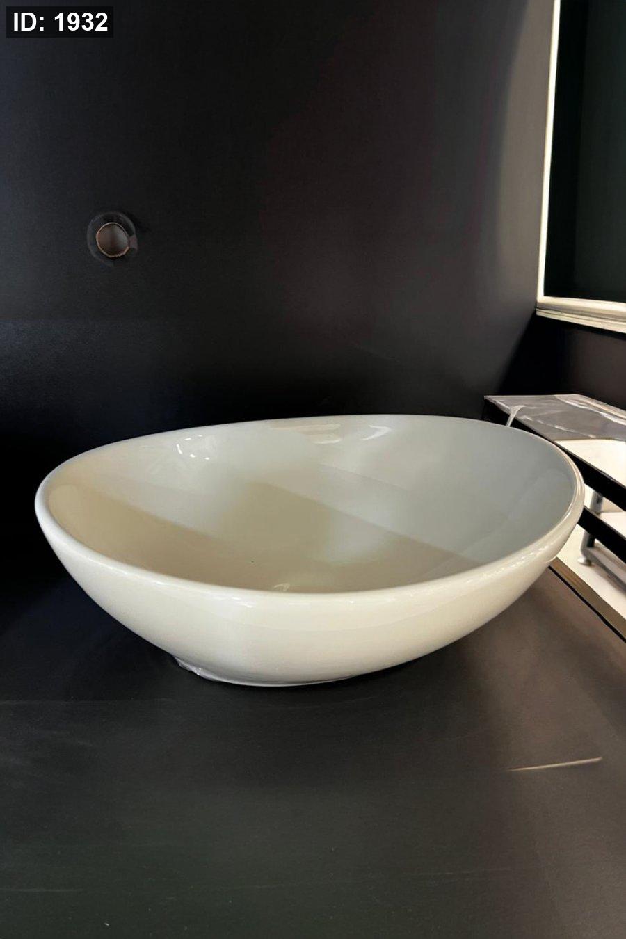 حوض مغسلة فوق سطح بتصميم بيضاوي بسيط باللون الأبيض، يناسب أي حمّام ويعطي إحساس نظافة وأناقة بدون تعقيد.