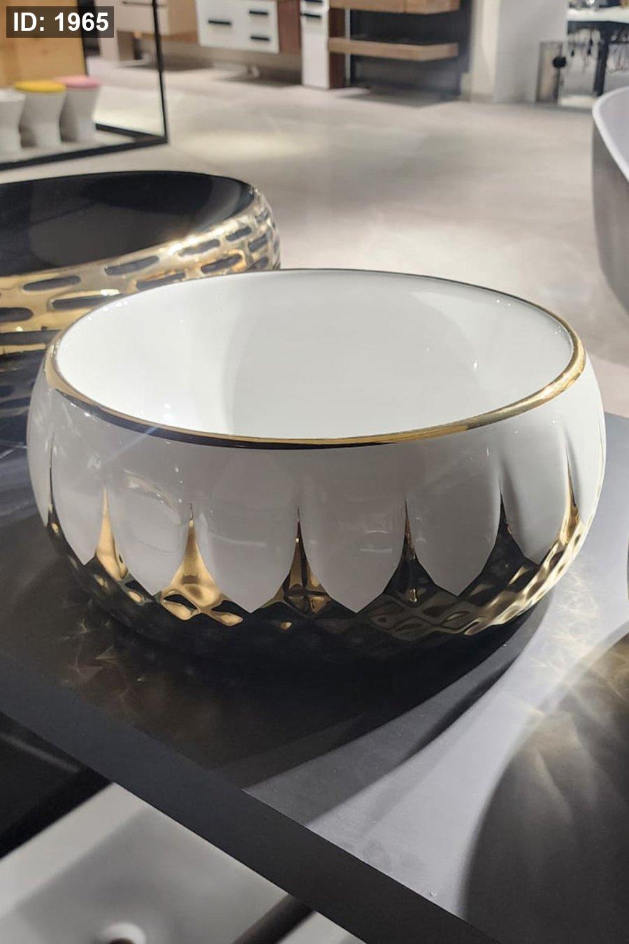 ديكور خارجي ذهبي مع شكل بتلات متكررة يمنح الحوض مظهر فندقي فاخر.