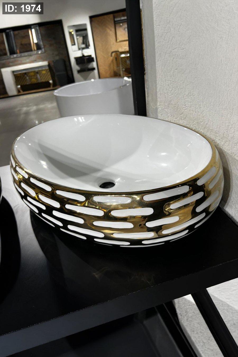ديكور خارجي ذهبي مع فتحات بيضاوية باللون الأبيض لستايل مودرن مميّز.