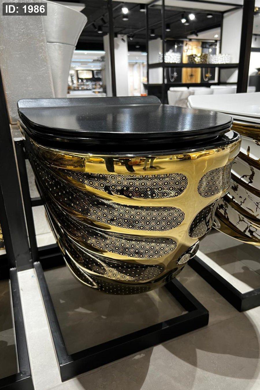 تصميم فني فاخر يجمع بين اللون الذهبي المرآتي والنقوش السداسية السوداء