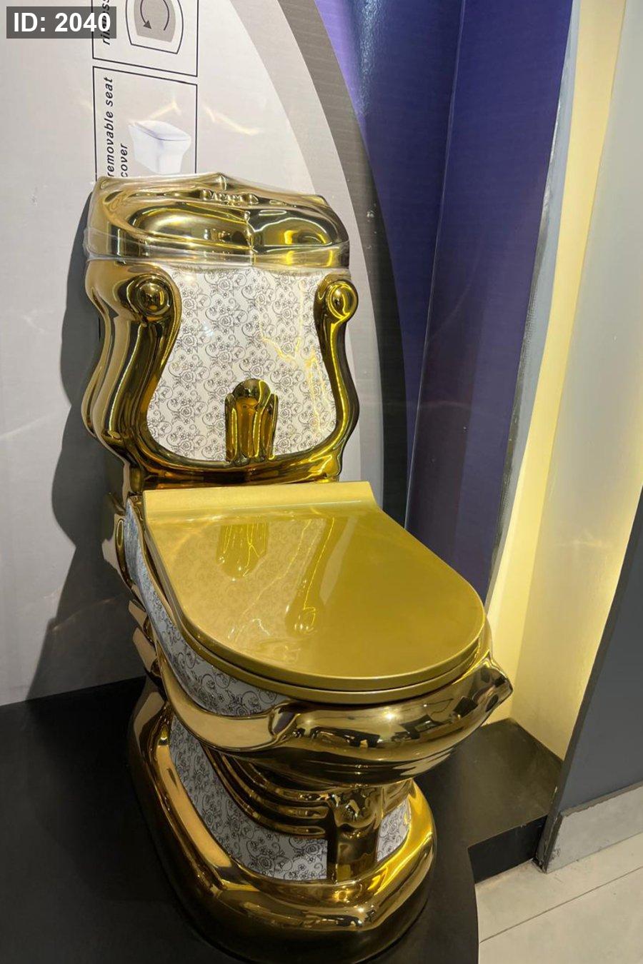 مرحاض بتصميم ملكي كلاسيكي مستوحى من الطراز الأوروبي القديم.
