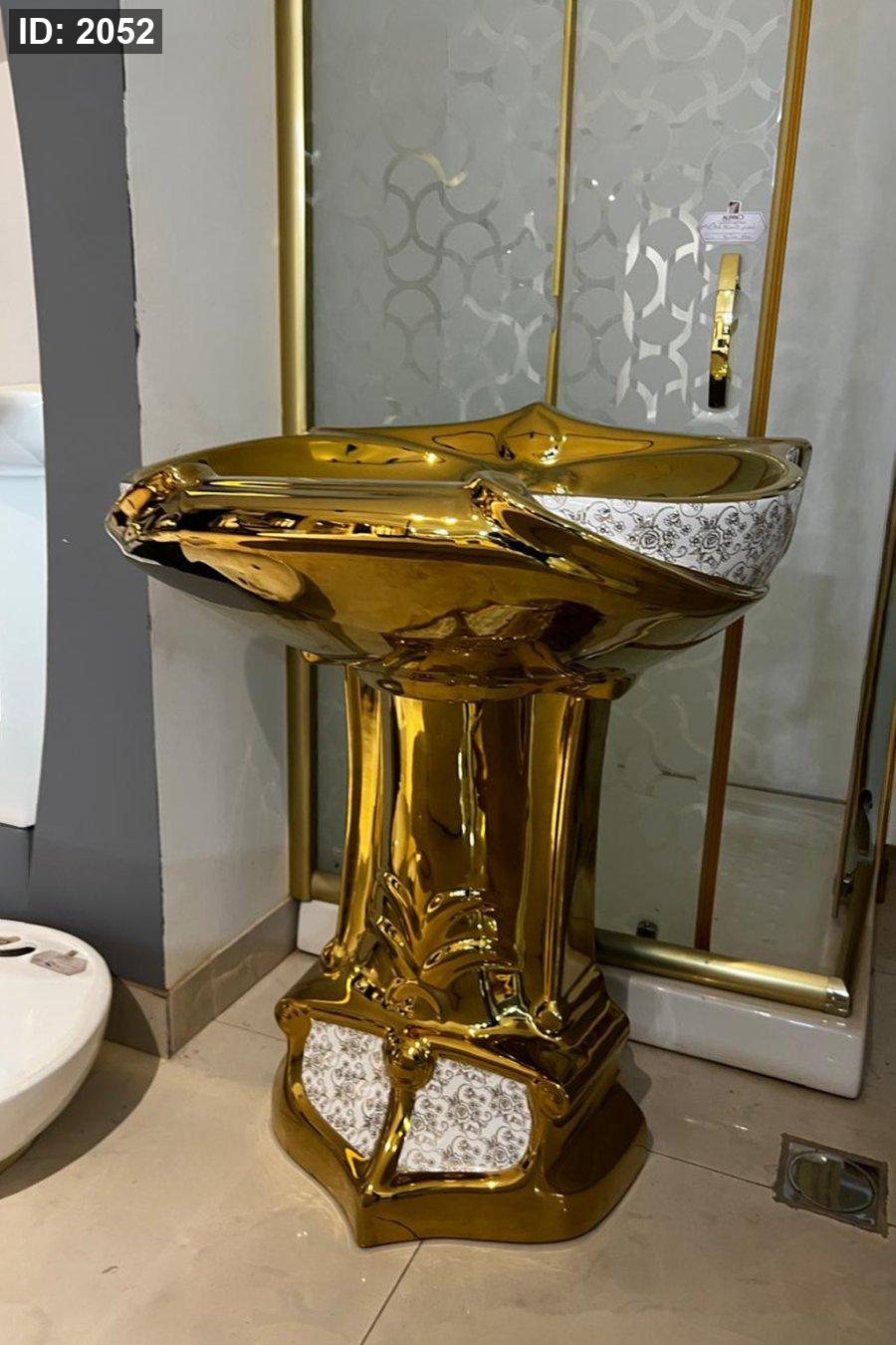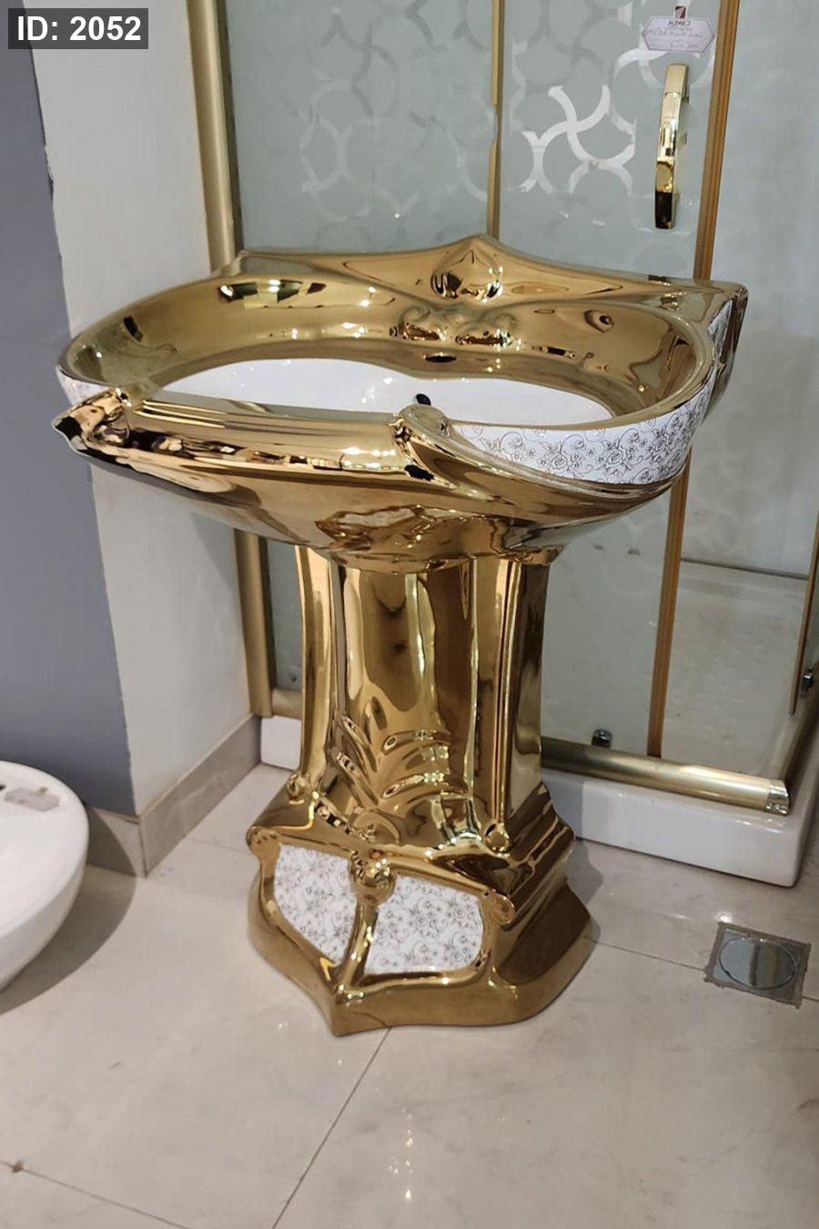 مغسلة ستاند مطلية باللون الذهبي اللامع بجودة عالية.