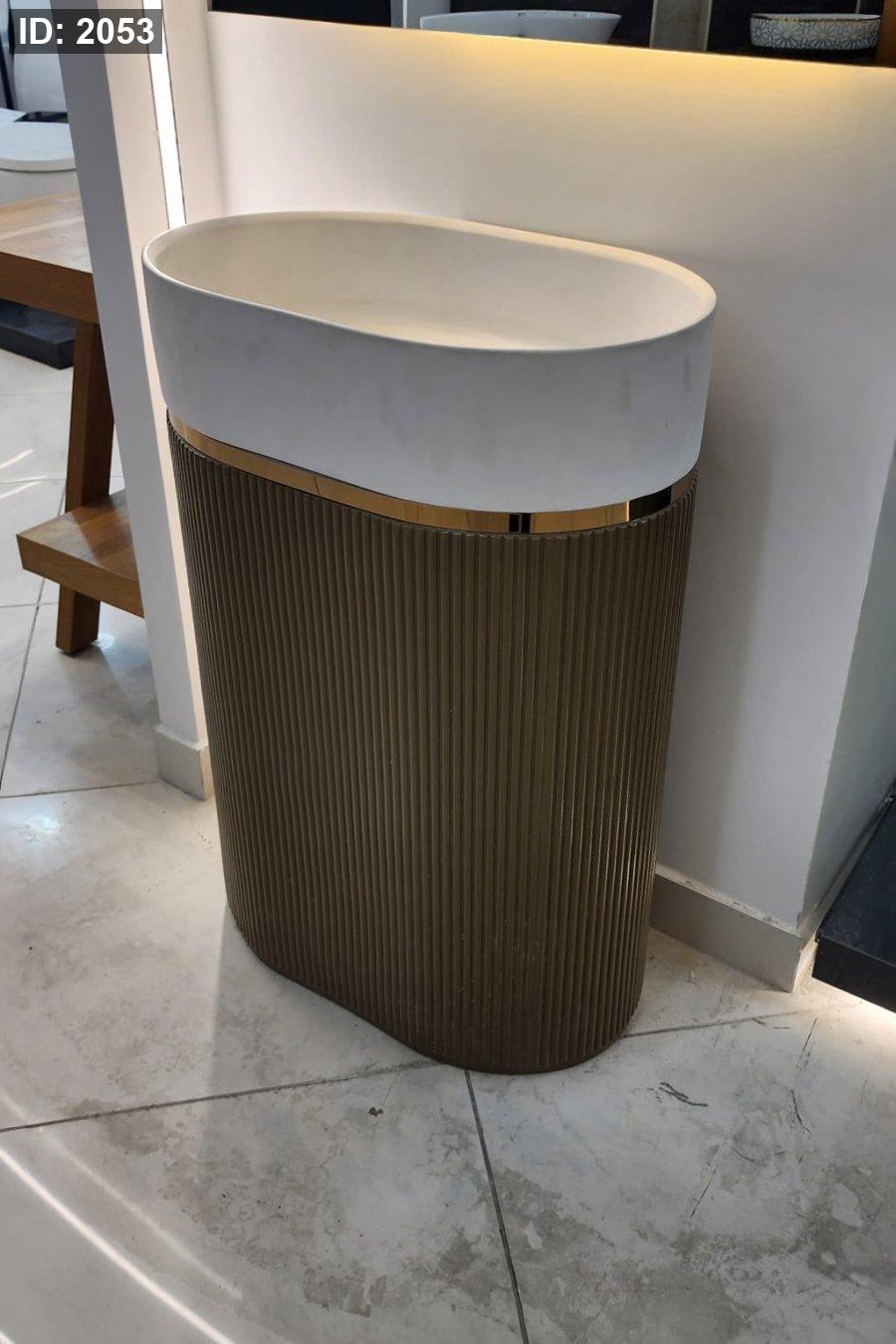 قاعدة ستاند بلون بيج مع خطوط طولية تعطي شكل مودرن وراقي.
