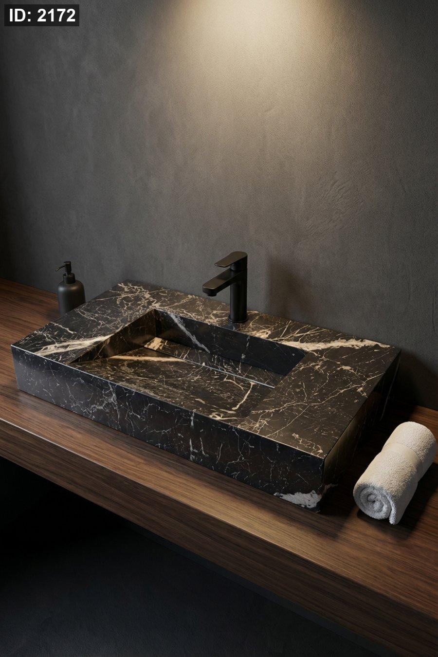 مغسلة رخام أسود فاخرة – تصميم مستطيل مودرن