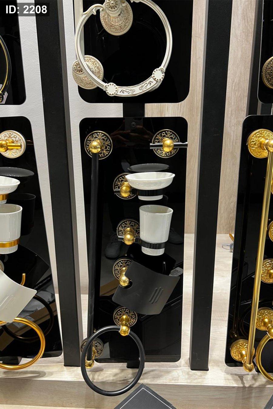 ✔ علاقة روب/مناشف علوية (أسود × ذهبي)