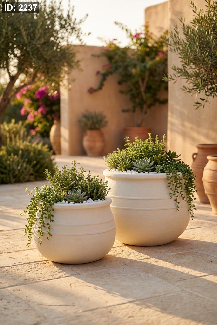 تصميم مدوّر منخفض مع فتحة عريضة يبرز النباتات والعصاريات بشكل أنيق.