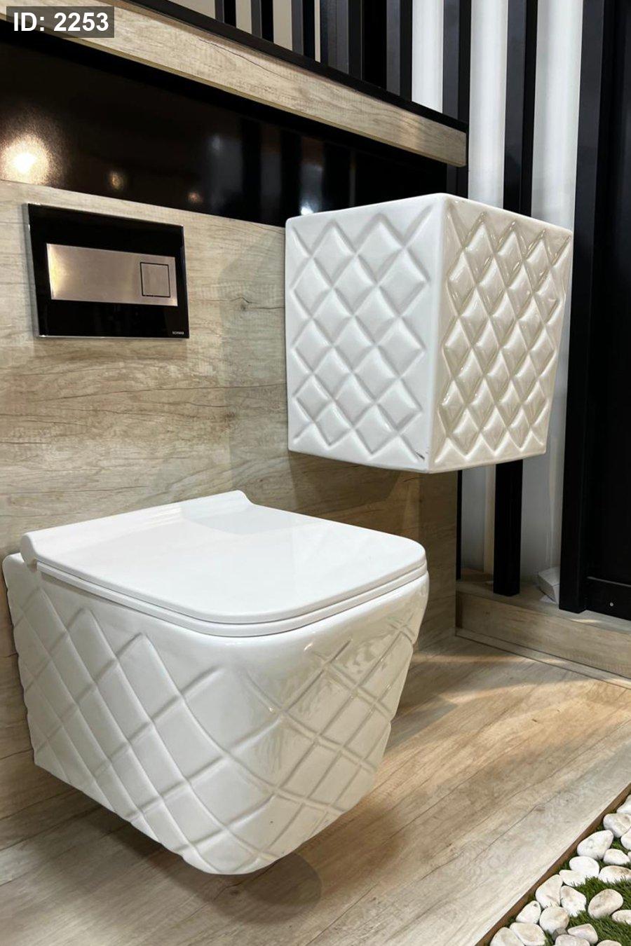 تصميم كابيتونيه (مربعات بارزة) على كامل جسم المرحاض.